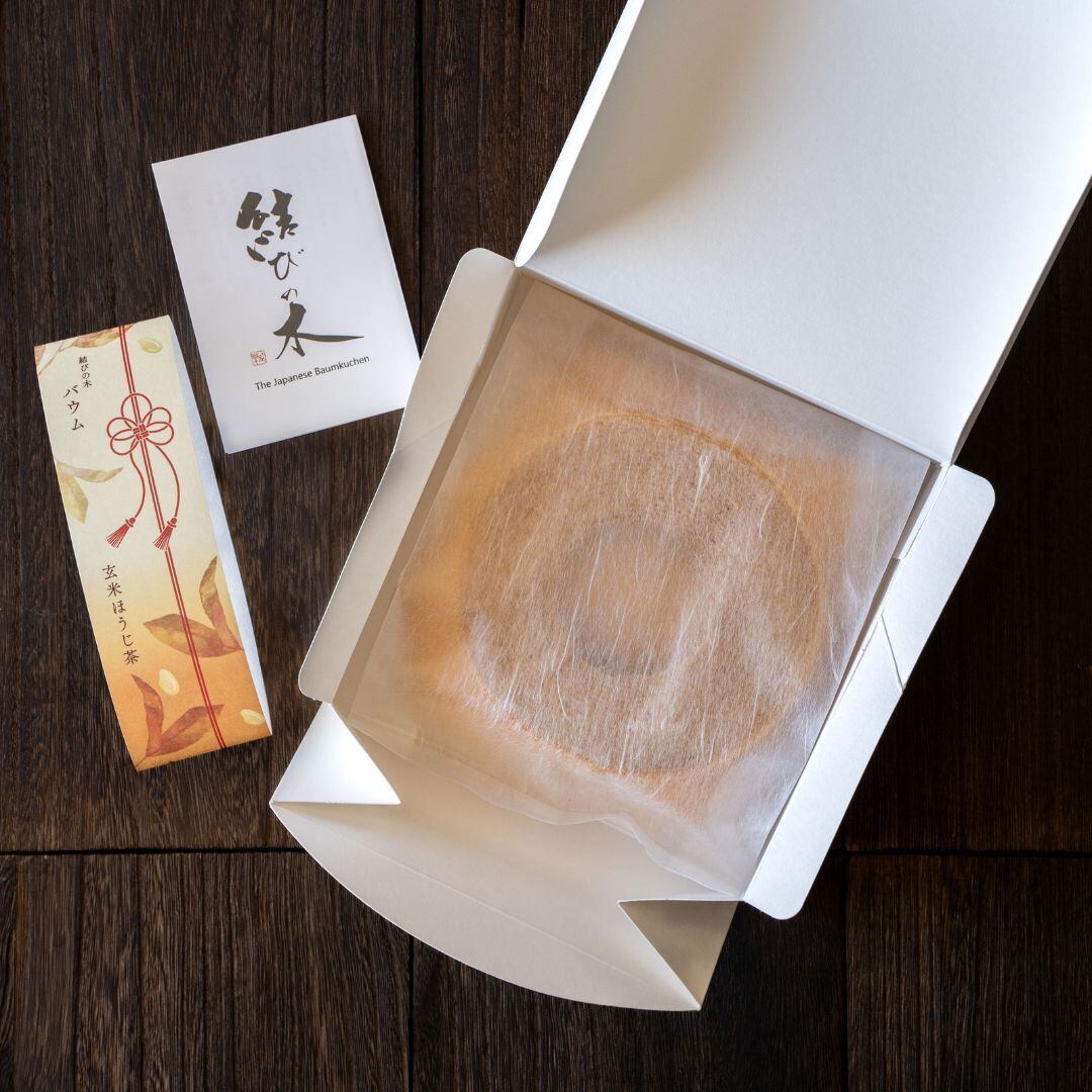 香ばしいほうじ茶の香りと、玄米粉のやさしい甘みが調和した、和の味わいのバウムクーヘン