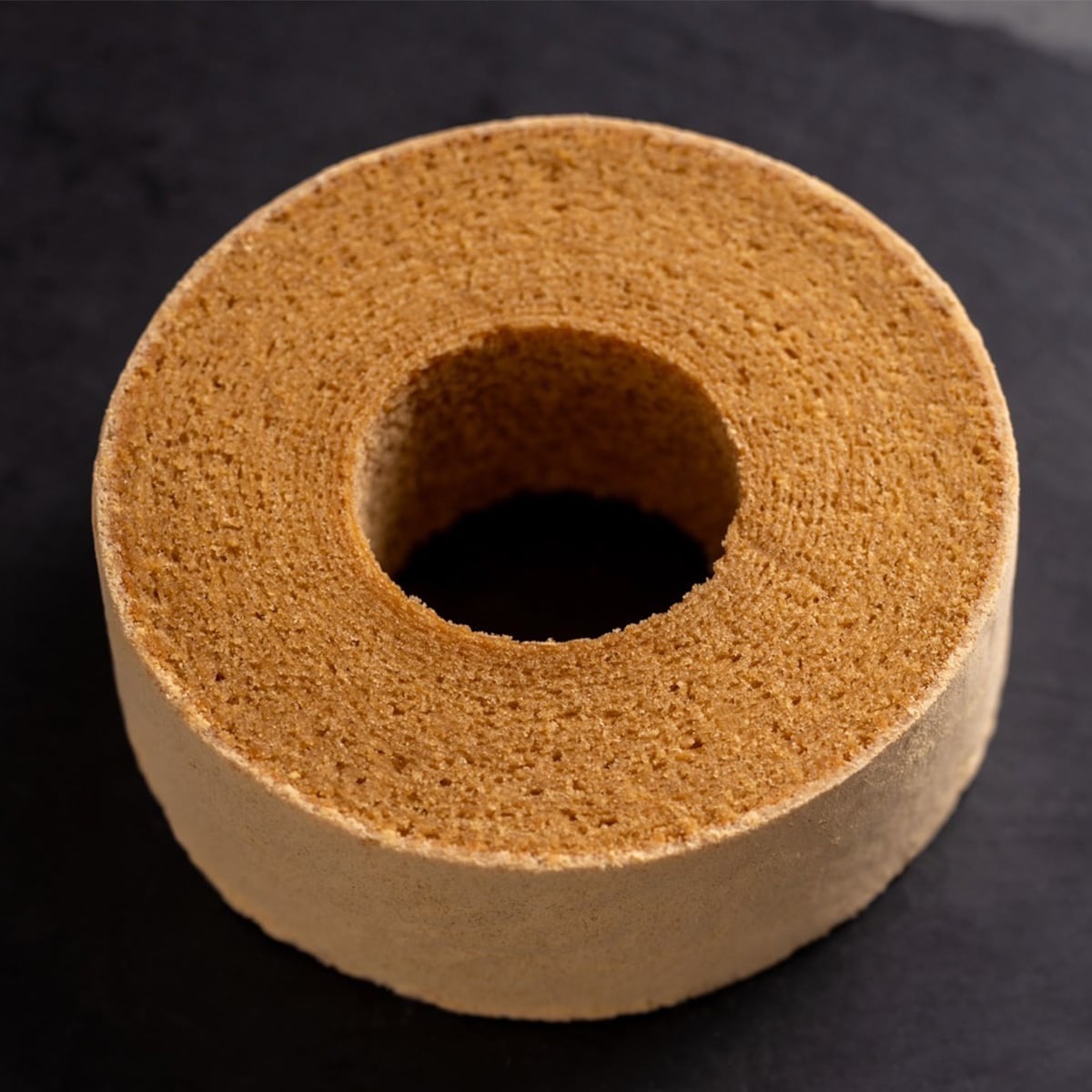 バウムの外周には黒糖と相性の良いきな粉入りの糖衣をコーティングし、和菓子にも通じる奥行きのある味わいとしっとりとした食感に仕上げました。